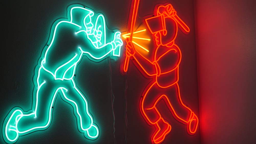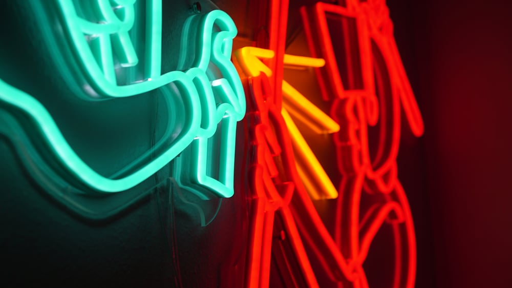 3-color LED on transparent acrylic backboard. 74"x62" (188 cm x 157 cm).